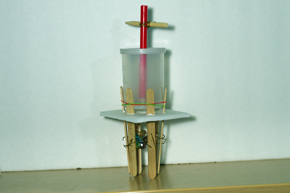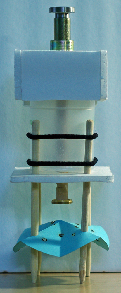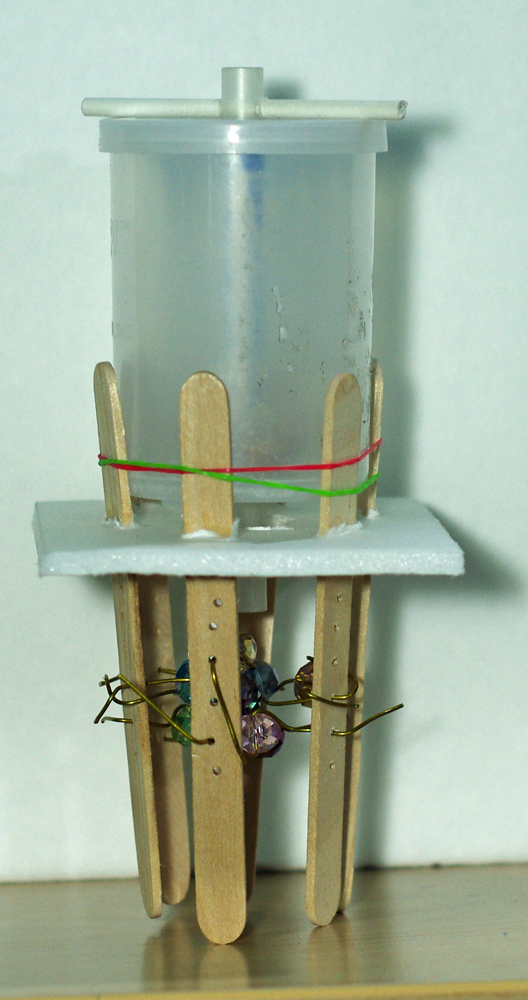 There is a central hollow tube which is inside a second hollow tube inside the salt container. When the central hollow tube is pulled, salt passes thru both tubes only when the randomly drilled holes align on both tubes. That’s how the salt comes out of the container and passes thru the central hollow tube and falls on the distribution system. As I cannot find the right size cones, I have used beads and made a kind of web of beads. The salt falls on the top bead and to the next layer of beads and the last layer of beads there by randomly distributed over the food. Masking the outside tube would change the amount of salt being dispensed. Masking a longer length of the outside tube would allow only a few holes on this tube that can be aligned with the holes on the central hollow tube. This means less salt can come out of the holes. Masking a shorter length of the outside tube would allow more holes on this tube that can be aligned with the holes on the central hollow tube. This means more salt can come out of the holes.